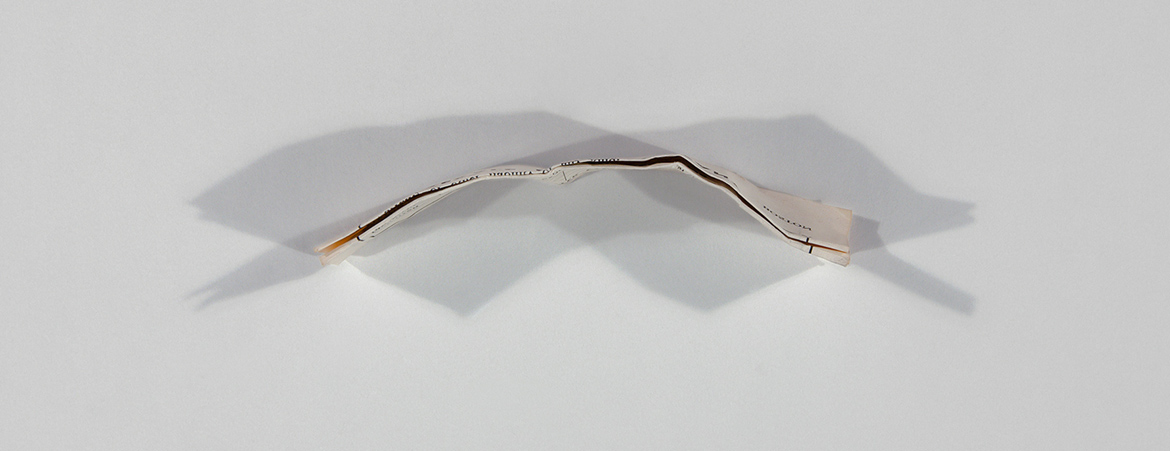 Les ombres de Socrate s’inscrit dans un questionnement sur nos perceptions. Entre ce que l’on voit et la réalité, il existe parfois un tel écart qu’il est difficile de discerner le vrai du faux. Les ombres portées des objets photographiés envahissent l’image et la contaminent. Dans l’allégorie de la caverne de Platon, Socrate considérait le monde sensible comme la prison de l’âme. L’amalgame du plein et du vide des photographies libère au contraire l’objet de sa matérialité pour le propulser avec ses ombres dans un ballet étrange et protéiforme. Papillon aux ailes déployées ? Pétales d’une fleur ? Voiles diaphanes d’un catamaran ? Qui sait ce qu’ils représentent au juste ? Socrate soutient que les hommes enchaînés dans les profondeurs de la terre n’attribueront de réalité qu’aux ombres des objets fabriqués. Appartenant à un passé plus ou moins récent, les objets et les documents que la logique capitaliste frappe d’obsolescence dans des délais toujours plus courts se réaniment aujourd’hui grâce aux ombres qui les entourent. Inscrits entre hier et aujourd’hui dans une double temporalité, ces objets subissent une métamorphose qui les sauvera peut-être de l’oubli auxquels ils sont voués. C’est du moins le pari que je fais.
